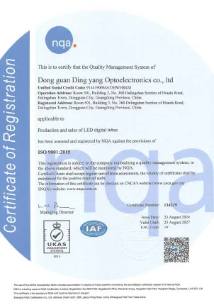 Dongguan Dingyang Optoelectronic Co., Ltd. is headquartered in Dongguan, known as the "World Factory." As a high-tech enterprise integrating production, academic collaboration, and research & development, the company specializes in manufacturing LED Nixie Tubes, LED Full-Color Displays, and LED Monochrome/Dual-Color Strips.